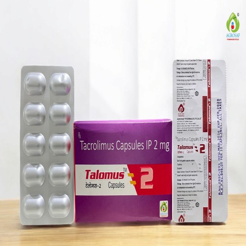 | Description: | TALOMUS 2 Capsules contain Tacrolimus 2 mg, a potent immunosuppressant used for the prevention of organ transplant rejection in patients undergoing kidney, liver, or heart transplantation. It works by inhibiting T-lymphocyte activation, thereby suppressing the immune response that may attack the transplanted organ. This higher-strength formulation supports optimized dose titration and effective long-term immunosuppression, ensuring improved graft survival and better clinical outcomes. |