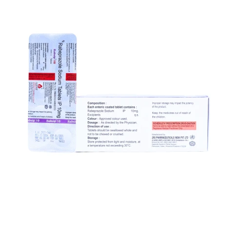 Description: RABSIP-10 TABLET contains Rabeprazole 10mg, a potent proton pump inhibitor (PPI) that effectively reduces stomach acid production. It is commonly prescribed for the treatment of acid-related gastrointestinal disorders, including: