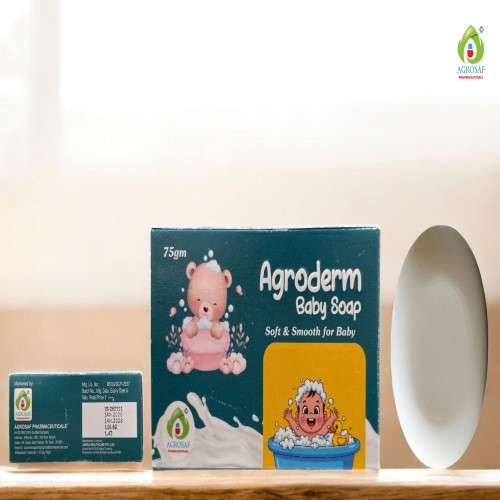 | Description: | AGRODERM Baby Soap is a gentle skincare formulation specially designed for delicate baby skin. It contains Olive Oil (2% w/w), Glycerine (0.5% w/w), and Vitamin E (0.2% w/w), along with nourishing natural ingredients like Aloe Vera extract, Shea butter, Kokum butter, Almond oil, Milk protein, Wheat protein, and Turmeric oil. This soap helps cleanse the skin gently while maintaining moisture balance and protecting the skin barrier. It is formulated to be mild, soothing, and suitable for daily baby hygiene. |