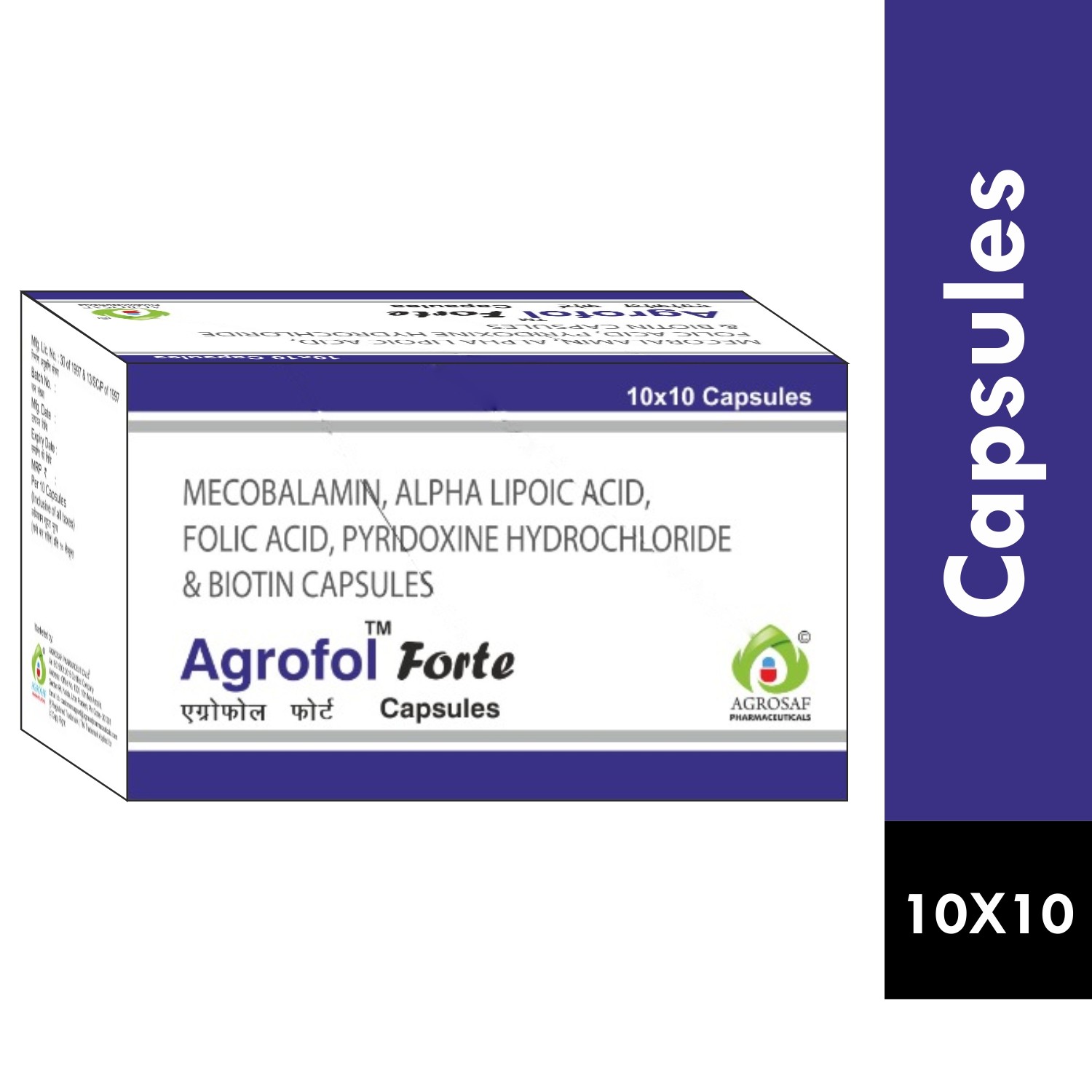 Each hard gelatin capsules contains : Mecobalamin IP 1500 mcg. + Alpha Lipoic Acid IP 200 mg. + Folic Acid IP 1.5 mg. + Pyridoxine Hydrochloride IP 3.0 mg. + Biotin IP 200 mcg. Excipients q.s. Colour: Approved colour used hard gelatin capsules shells.