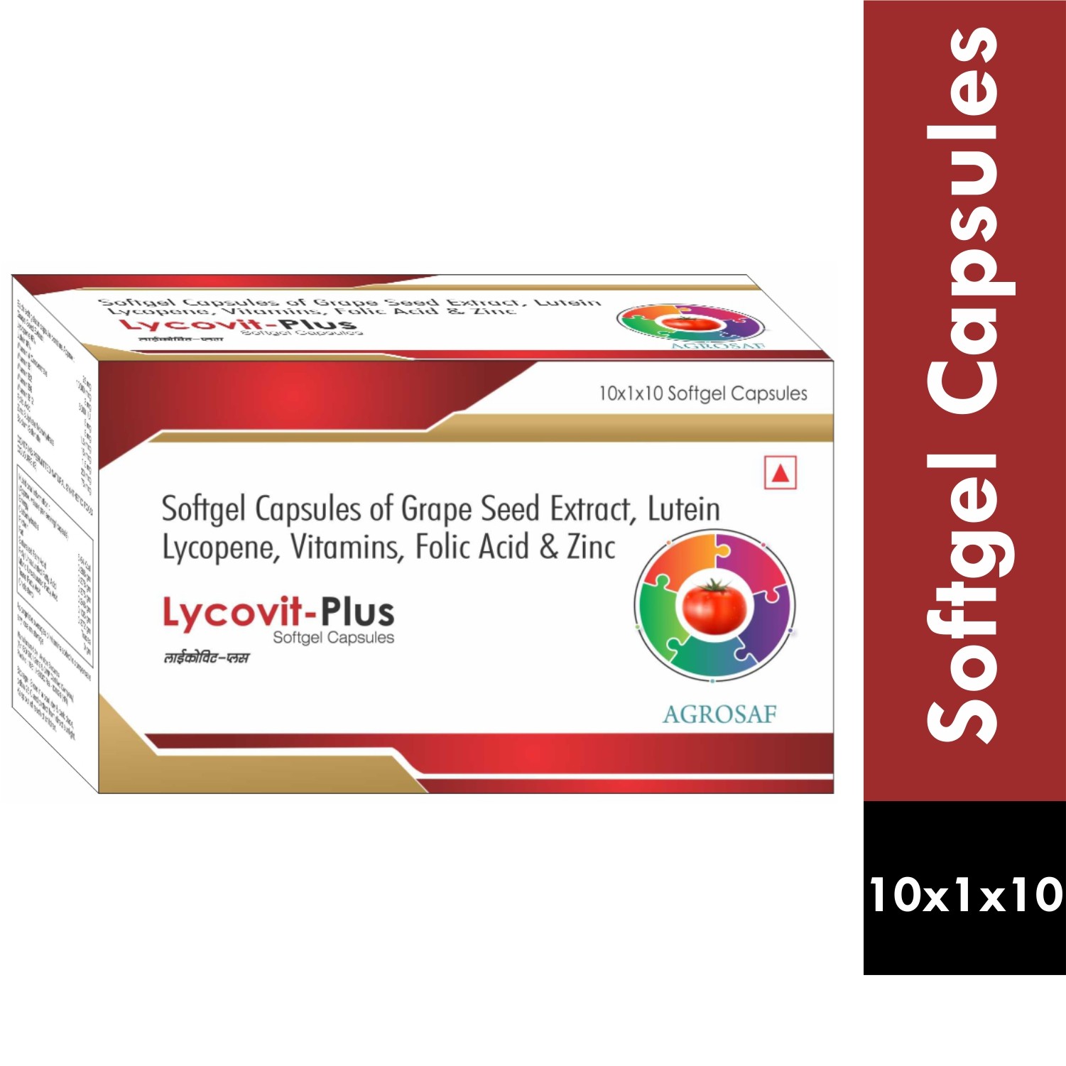 Lycopene 1000MCG, Vitamin A 2000 I.U., Vitamin E 10 I.U., Folic Acid 200MCG, Zinc Sulphate 12MG, Vitamin B1 0.5MG, Vitamin B2 1.0MG & Vitamin B6 1MG