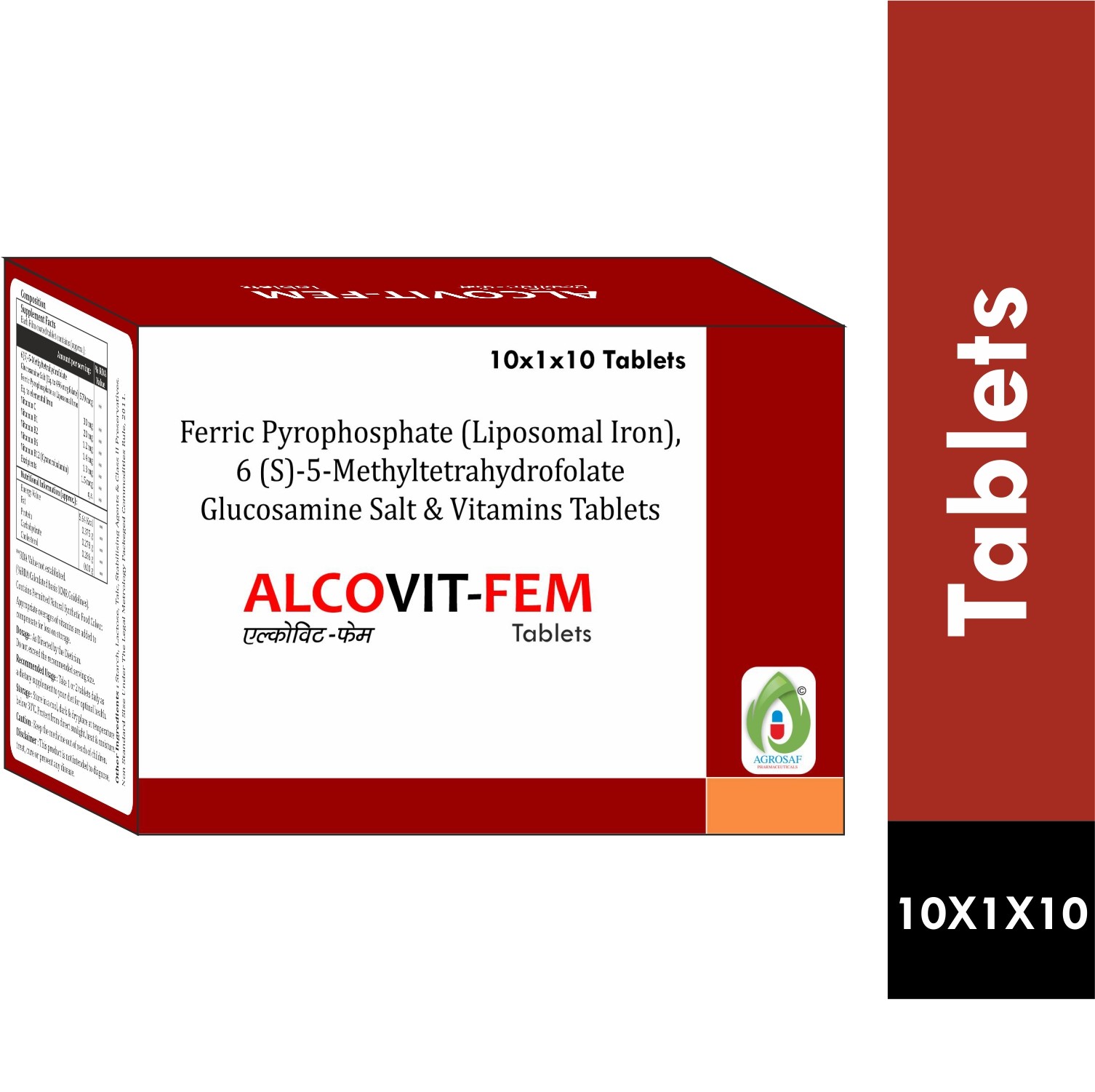 6(S)-5-Methyltetrahydrofolate Glucosamine Salt (eq.to 496 mcg Folate) 570 mcg + Ferric Pyrophosphate as Liposomal iron eq. to elemental Iron 30 mg + Vitamin C 20 mg+Vitamin B1 1.2 mg + Vitamin B2 1.4 mg + Vitamin B6 1.3 mg + Vitamin B12 (Cyanocobalamin) 1.5 mg + Excipients q.s.
