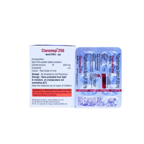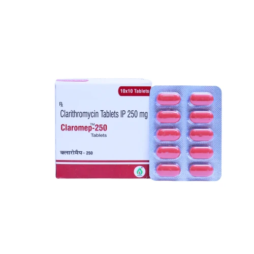 | Description: | CLAROMEP 250 Tablet contains Clarithromycin 250 mg, a macrolide antibiotic used to treat a wide range of bacterial infections. It works by inhibiting bacterial protein synthesis, thereby stopping the growth and spread of infection-causing bacteria. CLAROMEP 250 Tablet is commonly prescribed for respiratory tract infections, skin infections, ear infections, and certain gastrointestinal infections such as those caused by Helicobacter pylori. |