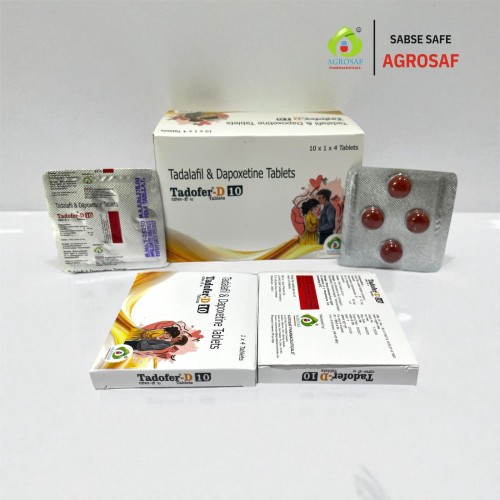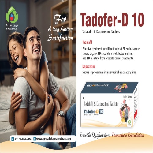 | Description: | TADOFER-D 10 Tablet combines Tadalafil 10mg and Dapoxetine 30mg to treat erectile dysfunction (ED) and premature ejaculation (PE) in men. Tadalafil, a PDE-5 inhibitor, enhances blood flow to the penis, supporting a firm and lasting erection. Dapoxetine, a selective serotonin reuptake inhibitor (SSRI), helps delay ejaculation, improving sexual performance and confidence. This combination provides an effective dual-action solution for men with both ED and PE. |