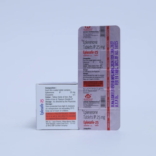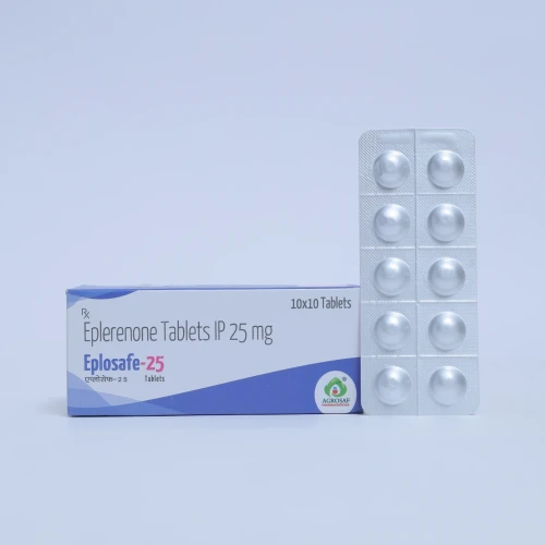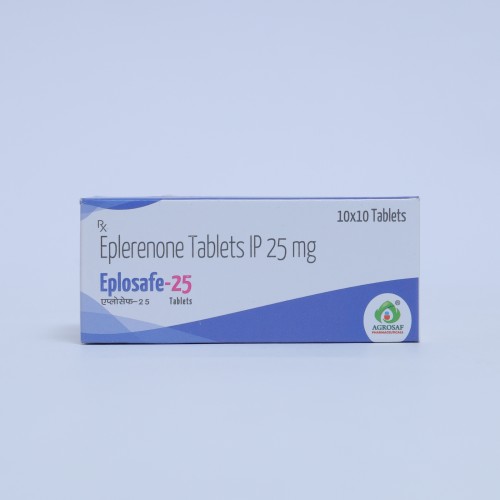 EPLOSAFE-25 Tablet is used to manage high blood pressure, heart failure, and fluid retention by blocking aldosterone and reducing strain on the heart.
