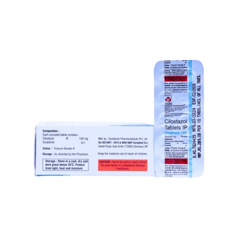 | Description: | CILOPHONE 100 Tablet contains Cilostazol 100 mg, a phosphodiesterase III inhibitor used to improve blood flow in patients with peripheral vascular disease. It works by dilating blood vessels and inhibiting platelet aggregation, thereby enhancing circulation and reducing symptoms such as leg pain during walking (intermittent claudication). This higher-strength formulation is typically prescribed for patients requiring stronger therapeutic effect to improve mobility and vascular function. |