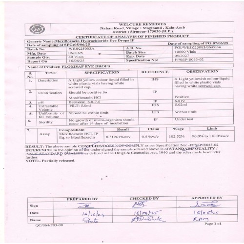| Product Benefits: | Effectively treats bacterial eye infections. Reduces redness, swelling, and irritation in the eyes. Supports faster healing of corneal and conjunctival infections. Helps prevent the spread of bacterial eye infections. |