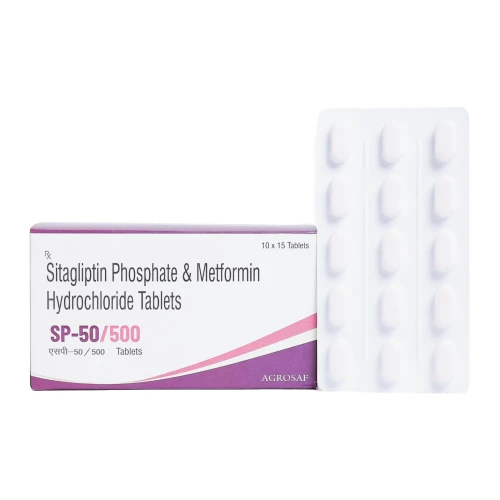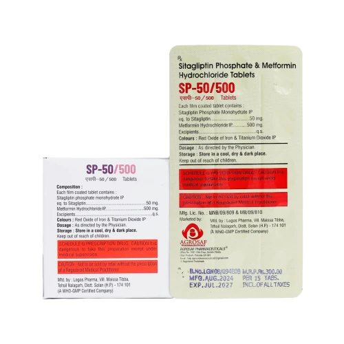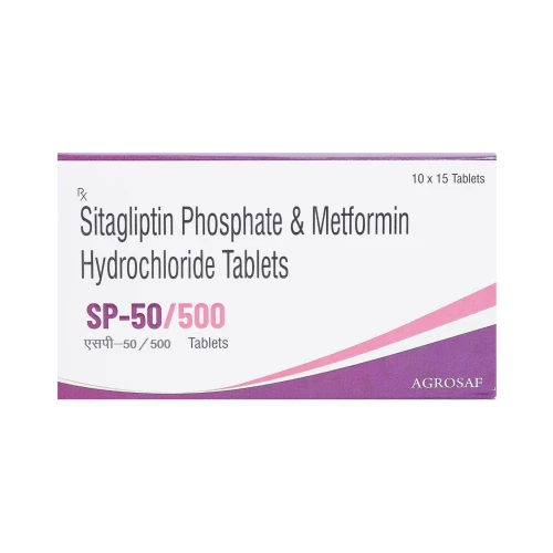 | Description: | S.P. 50/500 MG Tablet is a combination anti-diabetic medication containing Sitagliptin and Metformin. It is widely used for the management of type 2 diabetes mellitus in adults. Sitagliptin belongs to the DPP-4 inhibitor class, which increases insulin release and decreases glucagon levels, while Metformin (a biguanide) reduces glucose production in the liver and improves insulin sensitivity. This dual-action formulation helps in better glycemic control when diet and exercise alone are insufficient. |