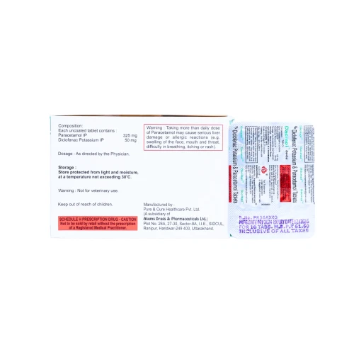 | COMPOSITION: | Diclofenac 50mg+paracetamol 325mg |