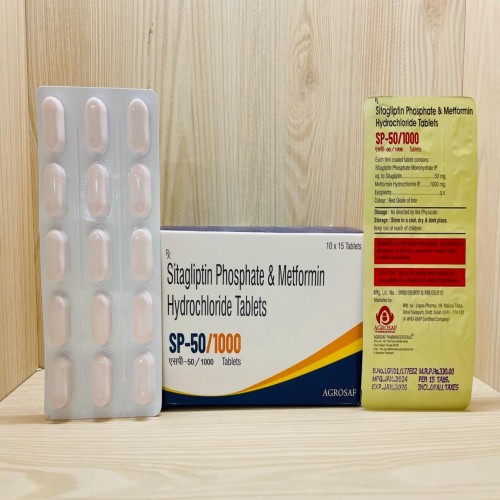 | Description: | S.P. 50/1000 MG Tablet is a combination anti-diabetic medication containing Sitagliptin and Metformin, used for the effective management of type 2 diabetes mellitus. Sitagliptin, a DPP-4 inhibitor, enhances insulin secretion and lowers glucagon levels, while Metformin, a biguanide, reduces hepatic glucose production and improves insulin sensitivity. This higher-strength formulation is ideal for patients requiring stronger glycemic control when lower doses are insufficient. |