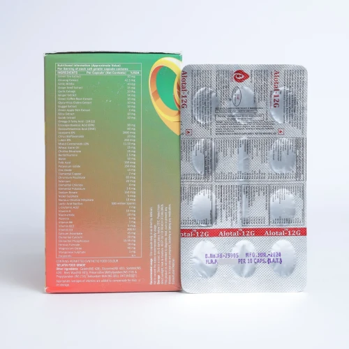Green Tea Extract 10mg + Ginseng Extract 42.50mg + Ginkgo Biloba 10mg + Grape Seed Extract 15mg + Garlic Extract 20mg + Ginger Extract 14mg + Green Coffe Bean Extract 10mg + Glycyrrhiza Glabra Extract 10mg + Guggal Extract 10mg + Green Apple Skin Extract 2mg + Giloy Extract 10mg + Gulab Extract 10mg + Epa 90mg + Dha 60mg + Lycopene 6% 2000mcg + Citrus Bioflavonoids 20mg + Lutein 8% 250mcg + Mixed Carotenoids 10% 11.33mg + Wheat Germ Oil 25mg + Choline Bitartrate 25mg + Benfothiamine 1.5mg + Biotin 10mg + Folic Acid 150mcg + Potassium Iodide 150mcg + Zinc Oxide 15mg + Elementel Copper 2mg + Chromium Picolinate 65mcg + Selenium 20mcg + Elemental Chloride 4mg + Elemental Potassium 3.6mg + Sodium Borate 150mcg + Nickel Sulphate 5mcg + Stanous Chloride Dihydrate 10mcg + Lactic Acid Bacillus 500 Million Spores + L-glutamic Acid 2mg + Vitamin K 10mcg + Niacinamide 20mg + Piperine 5mg + Vitamin B 6 5mg + Vitamin B 12 5mcg + Vitamin D 3 200 I.u. + Calcium Ascorbate 45mg + Elemental Calcium 20mg + Elemental Phosphorous 15.45mg + Ferrous Fumrate 30mg + Magnesium Oxide 40mg + Manganese Sulphate 1mg |