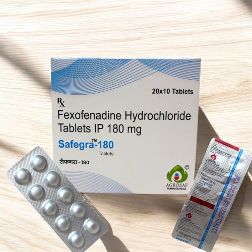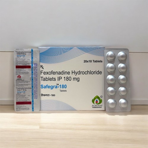 | Description: | SAFEGRA 180 Tablet contains Fexofenadine 180mg, a second-generation antihistamine used for the treatment of allergic conditions such as chronic urticaria (hives), allergic rhinitis, sneezing, runny nose, and itchy/watery eyes. Fexofenadine works by blocking histamine (H1 receptors), which is responsible for allergic reactions. It provides long-lasting relief from allergy symptoms with minimal sedation, making it suitable for daily use without affecting alertness. |