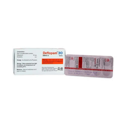 | Description: | DEFLOPAM-30 Tablet contains Deflazacort 30 mg, a potent corticosteroid used to reduce inflammation and suppress overactive immune responses in various medical conditions. It is commonly prescribed for severe autoimmune disorders, chronic inflammatory diseases, allergic reactions, and musculoskeletal conditions. DEFLOPAM-30 works by modulating immune system activity and reducing inflammatory chemical production, providing effective symptom relief and improving patient outcomes. |