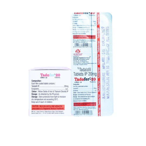 | Description: | TADOFER-20 Tablet contains Tadalafil 20mg, a phosphodiesterase type 5 (PDE-5) inhibitor used for the treatment of erectile dysfunction (ED) in men. It works by relaxing blood vessels in the penis, increasing blood flow during sexual stimulation, which helps achieve and maintain a firm erection. The 20mg dose is an on-demand therapy, typically prescribed for patients who do not respond adequately to lower doses. |