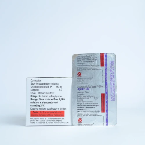 | Description: | AGROLIV 450 Tablet contains Ursodeoxycholic Acid 450mg, a therapeutic bile acid used for liver and gallbladder disorders. It is effective in dissolving cholesterol gallstones, enhancing bile flow, and protecting liver cells from damage. Commonly prescribed for cholestasis, non-alcoholic fatty liver disease (NAFLD), and elevated liver enzymes, AGROLIV 450 supports optimal liver function, digestion, and overall hepatobiliary health. |