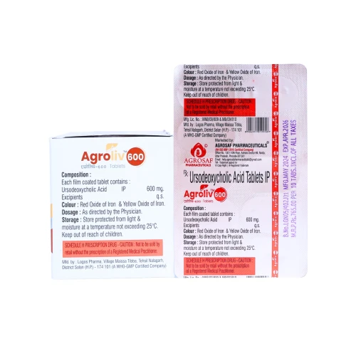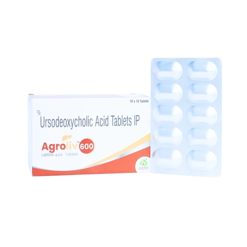 | Description: | AGROLIV 600 Tablet contains Ursodeoxycholic Acid 600mg, a bile acid therapy used to manage liver and gallbladder disorders. It is highly effective in dissolving cholesterol gallstones, enhancing bile flow, and protecting hepatocytes. This formulation is commonly prescribed for cholestasis, non-alcoholic fatty liver disease (NAFLD), elevated liver enzymes, and other hepatobiliary conditions, supporting optimal liver function and digestive health. |