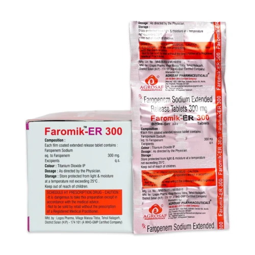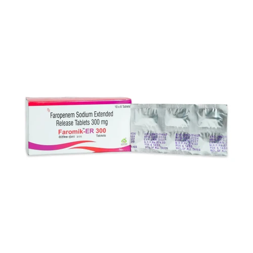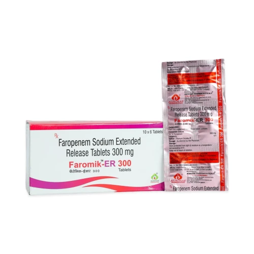 | Description: | FAROMIK-ER 300 Tablet contains Faropenem Extended Release 300mg, an oral broad-spectrum penem antibiotic designed for sustained drug release and prolonged antibacterial action. Faropenem works by inhibiting bacterial cell wall synthesis, effectively killing a wide range of gram-positive and gram-negative bacteria. The extended-release formulation ensures consistent drug levels, improving efficacy and patient compliance in the treatment of respiratory tract infections, urinary tract infections, skin infections, and gynecological infections. |