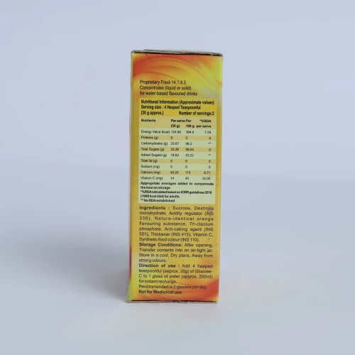 Each 35 gm contains Dextrose 17.5 gm, Sucrose 14 gm, Zinc Sulphate 17 mg. Vitamin C 50 mg, Flavour and Excipients q.s. Colour: Sunset Yellow FCF.