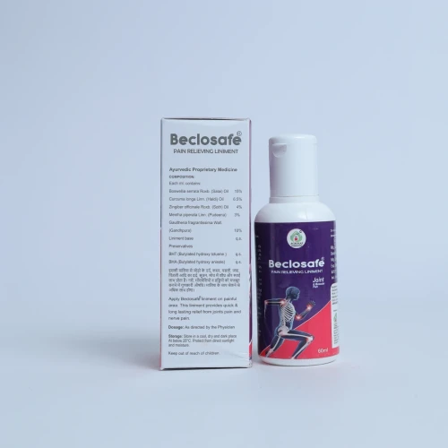 | Description: | BECLOSAFE LINIMENT is a soothing Ayurvedic pain relief formulation enriched with the natural oils of Salai (Boswellia serrata), Haldi (Turmeric), Sonth (Ginger), Pudina (Peppermint), and Gandhpura (Wintergreen). This herbal liniment is designed to provide quick and deep relief from muscle stiffness, joint pain, backache, and body fatigue. It helps reduce inflammation, ease movement, and promote faster comfort naturally. Key Features: Alternative Products : Moov Pain Relief Specialist Spray/Oil Volini Pain Relief Gel or Spray Amrutanjan Strong Pain Balm Tiger Balm Red/White Dr. Ortho Ayurvedic Pain Relieving Oil |