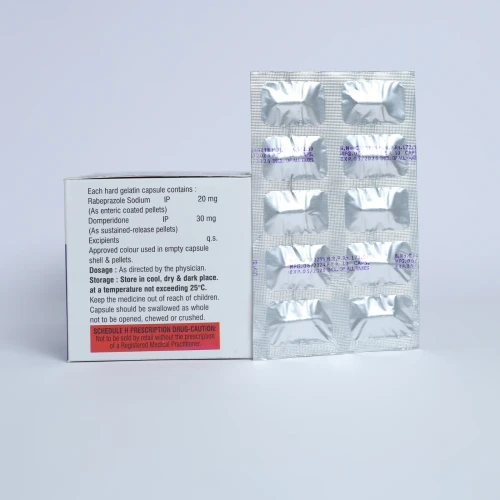 | COMPOSITION: | Rabeprazole 20mg+ Domperidone 30mg |