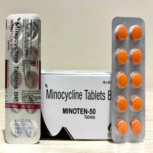 | Description: | MINOTEN-50 Tablet contains Minocycline 50mg, a broad-spectrum tetracycline antibiotic used to treat a wide range of bacterial infections. It works by inhibiting bacterial protein synthesis, thereby preventing the growth and spread of infection-causing bacteria. Minocycline is commonly prescribed for respiratory tract infections, skin infections (including acne), urinary tract infections, and certain sexually transmitted infections. It is also effective in managing inflammatory acne due to its anti-inflammatory properties. |