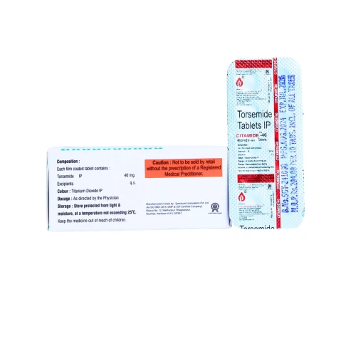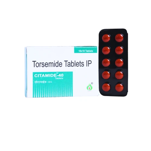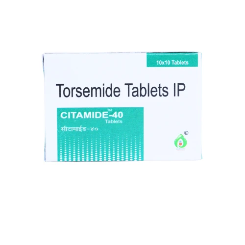 | Description: | CITAMIDE-40 Tablet contains Torsemide 40mg, a high-strength loop diuretic used for the treatment of severe edema (fluid retention) associated with heart failure, kidney disorders, or liver cirrhosis, and for the management of hypertension. It works by increasing urine output, helping the body eliminate excess salt and water, thereby reducing swelling and lowering blood pressure. This strength is typically prescribed in severe fluid overload conditions requiring strong diuretic action. |