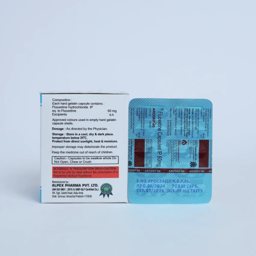| Description: | ARODEP 60 Capsule contains Fluoxetine 60 mg, a high-strength selective serotonin reuptake inhibitor (SSRI) used for the treatment of major depressive disorder, obsessive-compulsive disorder (OCD), panic disorder, and severe anxiety conditions. It works by increasing serotonin levels in the brain, helping improve mood, emotional stability, and overall mental well-being. This higher-dose formulation is typically prescribed for patients who require stronger symptom control or have not responded adequately to lower doses. |