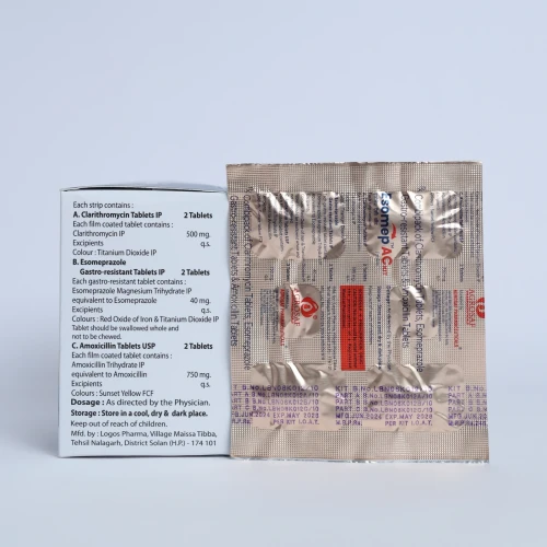 | How to Use: | Take ESOMEP-AC Kit Tablet exactly as prescribed by a doctor. Usually, the therapy is administered twice daily for 10–14 days. Take tablets with water, ideally before meals. Complete the full course even if symptoms improve early. Do not skip doses or self-adjust the treatment schedule. |