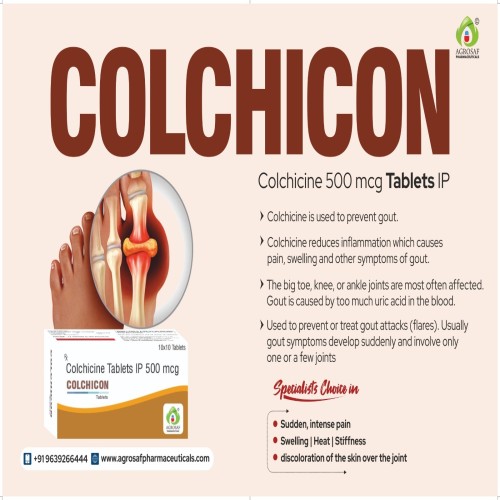 | Product Benefits: | Effective in relieving acute gout attacks. Helps prevent recurrent gout episodes. Reduces joint inflammation and pain. Useful in managing familial Mediterranean fever. Supports long-term control of inflammatory conditions. |