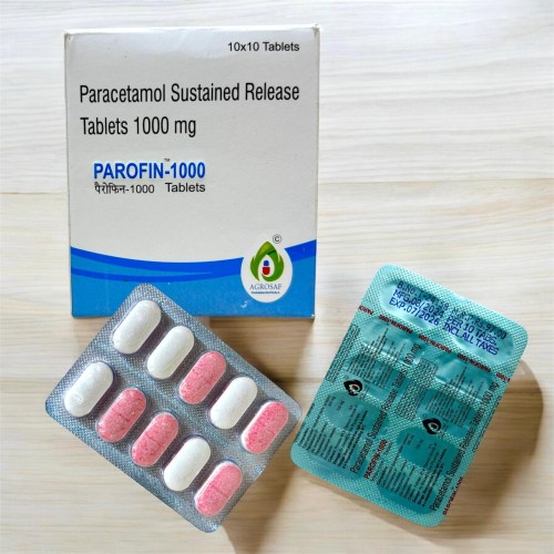 | Description: | PAROFIN-1000 Tablet contains a combination of Paracetamol 300 mg as immediate release and 700 mg as sustained release. This dual-action formulation provides rapid onset of pain relief and prolonged therapeutic effect. It is used for managing moderate to severe pain, including musculoskeletal pain, headaches, fever, post-operative pain, and other conditions requiring sustained analgesia. |
