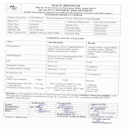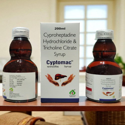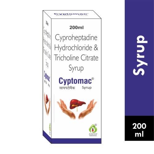 | COMPOSITION: | Cyproheptadine (2mg5ml) + Tricholine Citrate (275mg5ml) + Flavored Sorbitol Base |
