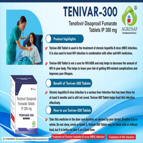 | Description: | TENIVAR-300 Tablet contains Tenofovir 300mg, an antiviral medication used for the treatment of HIV infection and chronic hepatitis B virus (HBV) infection. It belongs to the class of nucleotide reverse transcriptase inhibitors (NRTIs) and works by inhibiting viral replication, thereby reducing the viral load in the body. TENIVAR-300 is commonly used as part of combination antiretroviral therapy (ART) to improve immune function and slow disease progression. |