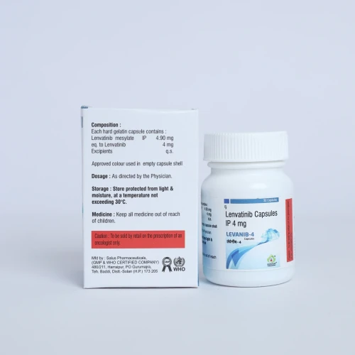 | Description: | LEVANIB-4 Capsule contains Lenvatinib 4 mg, an oral targeted therapy (tyrosine kinase inhibitor) used in the treatment of various cancers. It works by inhibiting multiple receptor tyrosine kinases involved in tumor growth, angiogenesis, and cancer progression. Lenvatinib is commonly prescribed for thyroid cancer, hepatocellular carcinoma (liver cancer), renal cell carcinoma, and endometrial cancer. This medication helps slow tumor growth and spread, improving clinical outcomes in cancer patients. |