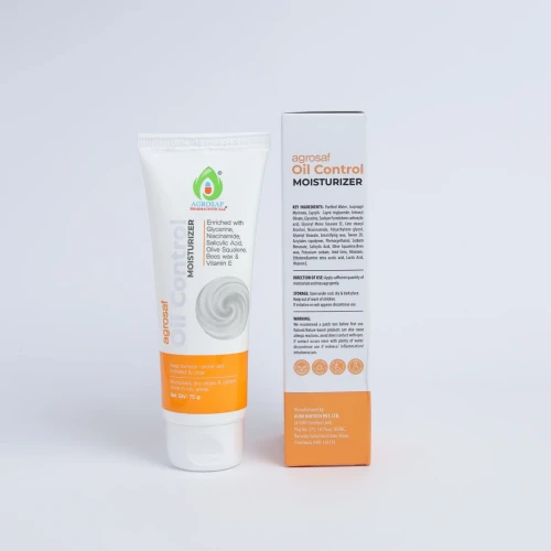 | Description: | AGROSAF Oil Control Moisturizer is specially crafted for oily and combination skin types. This non-greasy, fast-absorbing formula controls excess oil while providing the right amount of hydration. Designed for daily use, it helps you maintain a fresh, matte look all day without clogging pores. Key Features: Balances oil production Hydrates without heaviness Helps reduce shine on the face Supports a clear, even skin tone How to Use: Cleanse your face thoroughly Take a small amount of the moisturizer Apply evenly on face and neck Use twice daily for best results Safety Tips: For external use only Avoid direct contact with eyes Store in a cool, dry place Do a patch test if you have sensitive skin Alternatives Products: Mamaearth Vitamin C Oil-Free Moisturizer Pond's Super Light Gel Oil Free Moisturiser VENUSIA Dr. Reddy's Acne Control Moisturizer |