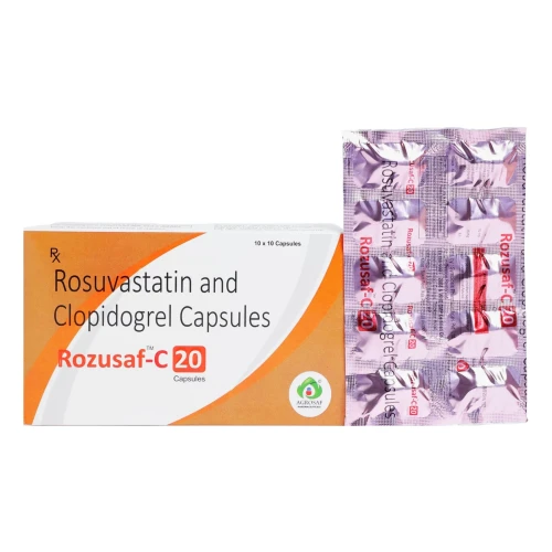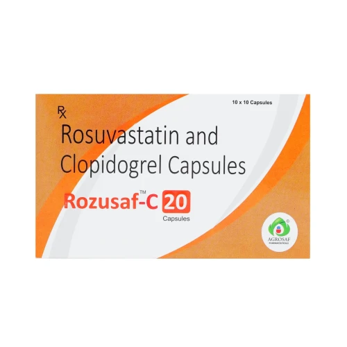 | Description: | ROZUSAF-C 20 Capsule is a dual-action cardiovascular therapy designed for patients at high risk of heart attack, stroke, or other thrombotic events. It contains Rosuvastatin 20 mg, which effectively lowers LDL cholesterol and triglycerides while increasing HDL cholesterol, and Clopidogrel 75 mg, an antiplatelet agent that prevents platelet aggregation. This combination provides comprehensive cardiovascular protection by managing cholesterol levels and reducing the risk of blood clot formation in a single convenient capsule. |