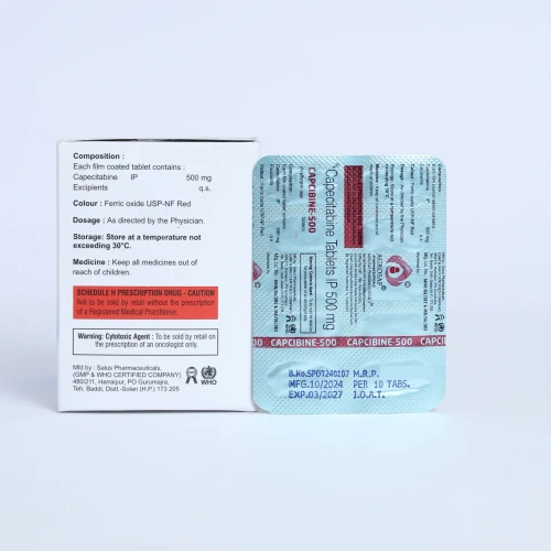 | Description: | CAPCIBINE-500 Tablet contains Capecitabine 500 mg, an oral chemotherapy medication used in the treatment of certain types of cancer, including colorectal cancer, breast cancer, and gastric cancer. It belongs to a class of drugs known as antimetabolites and works by interfering with the growth and spread of cancer cells in the body. Once inside the body, Capecitabine is converted into 5-fluorouracil (5-FU), which inhibits DNA synthesis in rapidly dividing cancer cells. CAPCIBINE-500 Tablet is commonly used as part of combination chemotherapy regimens under strict medical supervision. |
