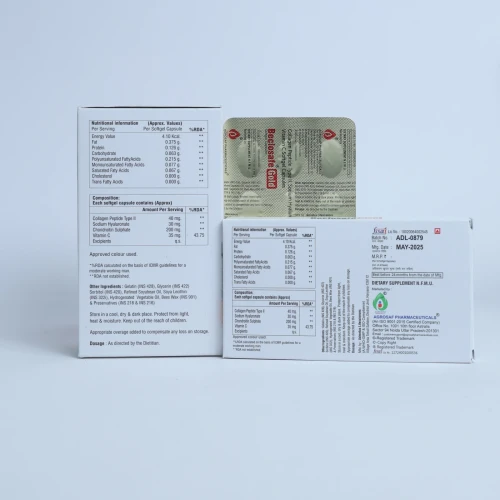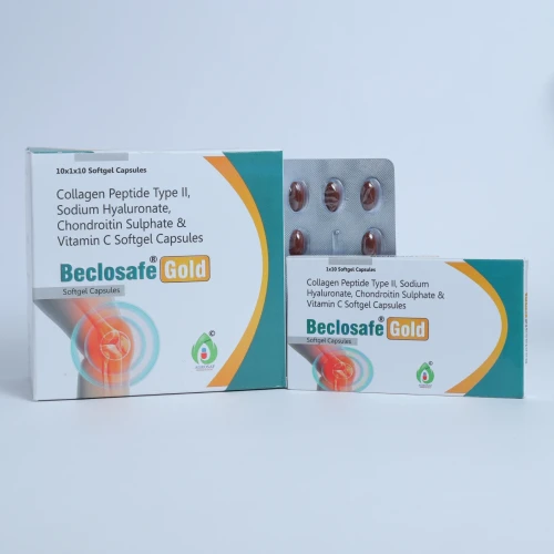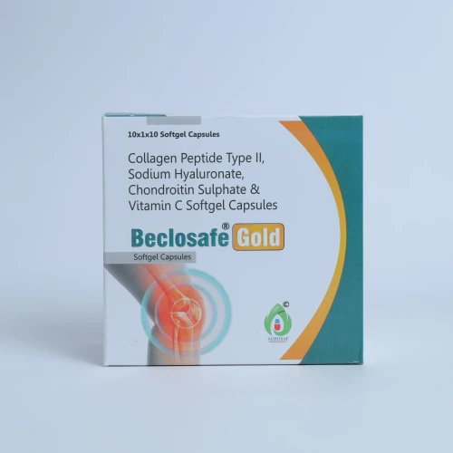 | Description: | BECLOSAFE GOLD Capsule is a premium joint health nutraceutical designed to support cartilage repair, joint lubrication, and overall mobility. It contains Collagen Peptide Type II, which helps in maintaining cartilage integrity; Chondroitin Sulphate, which supports joint cushioning and flexibility; and Sodium Hyaluronate, which improves joint lubrication. Vitamin C plays a vital role in collagen synthesis and provides antioxidant protection. This advanced combination is ideal for managing osteoarthritis, joint stiffness, and age-related joint degeneration, ensuring long-term joint support and improved quality of life. |