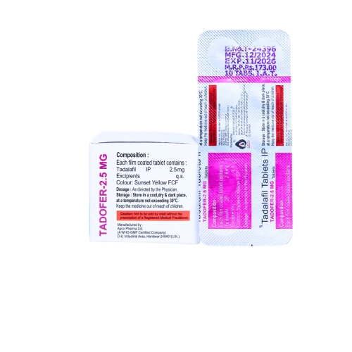 | Description: | TADOFER-2.5 Tablet contains Tadalafil 2.5mg, a low-dose phosphodiesterase type 5 (PDE-5) inhibitor used for daily therapy in men with erectile dysfunction (ED). This low-dose daily regimen allows men to achieve spontaneous erections without planning sexual activity, improving convenience and overall sexual confidence. It works by relaxing blood vessels in the penis, increasing blood flow during sexual stimulation. |