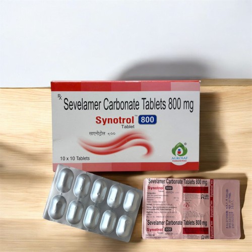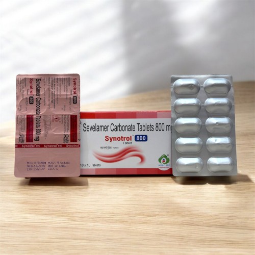 | Description: | SYNOTROL 800 Tablet contains Sevelamer 800 mg. It is used to manage hyperphosphatemia (elevated phosphate levels) in patients with chronic kidney disease (CKD), especially those undergoing dialysis. Sevelamer binds dietary phosphate in the gastrointestinal tract, preventing its absorption and helping maintain optimal serum phosphate levels. This higher strength is suitable for patients requiring stronger phosphate control. |