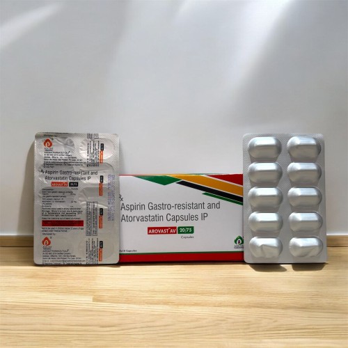 | Description: | AROVAST AV 20/75 Capsule is a combination medication containing Atorvastatin (20 mg) and Aspirin (75 mg), formulated to manage and prevent cardiovascular diseases. Atorvastatin works by reducing bad cholesterol (LDL) and triglycerides while improving good cholesterol (HDL) levels. Aspirin, in a low dose, acts as an antiplatelet agent that prevents blood clot formation. This combination is highly effective for patients at elevated risk of heart attack, stroke, and other cardiac complications, especially those requiring stronger cholesterol control. |