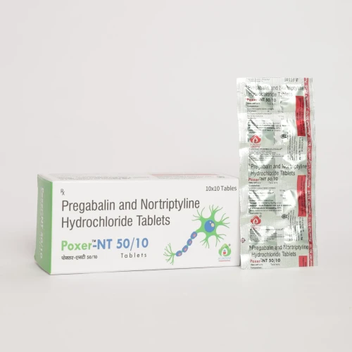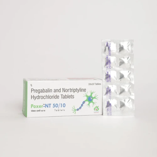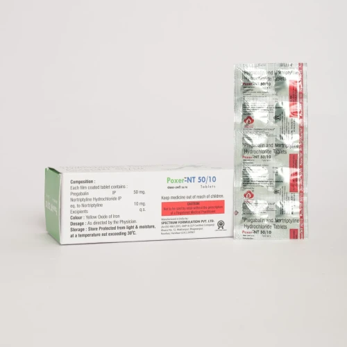 | Description: | POXER NT-50/10 Tablet is a combination of Pregabalin 50 mg and Nortriptyline 10 mg. It is used for the management of neuropathic pain associated with conditions such as diabetic neuropathy, post-herpetic neuralgia, and nerve-related pain disorders. Pregabalin reduces abnormal nerve signals, while Nortriptyline enhances pain modulation through its action on neurotransmitters, providing effective and sustained pain relief. |