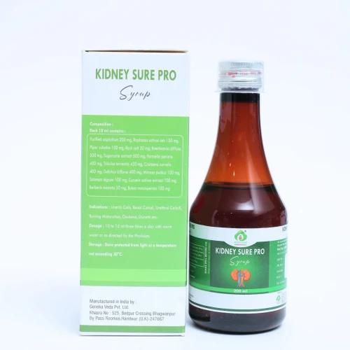 | Description: | KIDNEY SURE PRO SYRUP is a herbal formulation designed to support healthy kidney function. Enriched with time-tested Ayurvedic ingredients, it helps flush out toxins, promotes urinary health, and supports overall renal wellness. Safe for regular use under expert guidance. Kidney health syrup, AGROSAF Kidney Sure Pro, herbal kidney tonic, detox syrup, natural kidney care, ayurvedic syrup for kidneys, urine flow support, renal health syrup, kidney cleanse, safe herbal formulation Key Features: Supports healthy kidney and urinary tract function Helps in natural detoxification Made with herbal extracts and safe ingredients Promotes balanced fluid levels in the body Suitable for regular use under guidance |