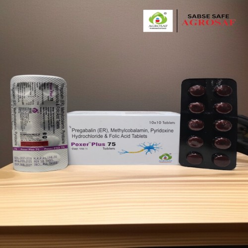 | Description: | POXER PLUS-75 Tablet is a comprehensive neuropathic care formulation containing Pregabalin 75 mg, Methylcobalamin 1500 mcg, Pyridoxine 20 mg, and Folic acid 5 mg. This combination is designed to provide effective relief from neuropathic pain while supporting nerve repair and regeneration. Pregabalin reduces abnormal nerve signals, while the vitamin complex enhances nerve health and recovery. |