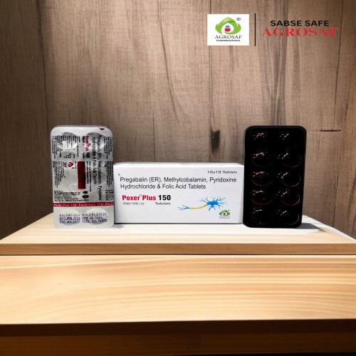 | Description: | POXER PLUS-150 Tablet is a high-strength neuropathic care formulation containing Pregabalin 150 mg, Methylcobalamin 1500 mcg, Pyridoxine 20 mg, and Folic acid 5 mg. This combination is designed for effective management of moderate to severe neuropathic pain along with nerve repair and regeneration. Pregabalin reduces abnormal nerve activity, while the vitamin complex supports nerve health and recovery. |