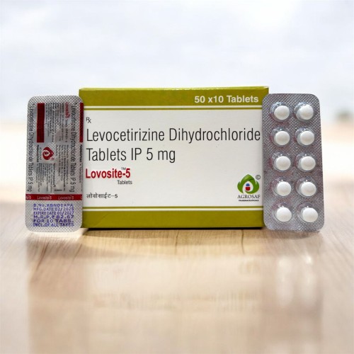 | Description: | LOVOSITE 5 Tablet contains Levocetirizine 5mg, a second-generation antihistamine used for the treatment of allergic conditions such as allergic rhinitis and urticaria (hives). Levocetirizine works by blocking H1 histamine receptors, thereby reducing symptoms like sneezing, runny nose, itching, watery eyes, and skin rashes. It provides fast and long-lasting relief with minimal sedation, making it suitable for daily use. |
