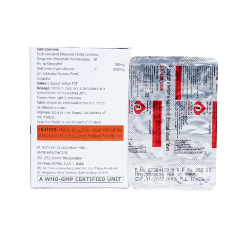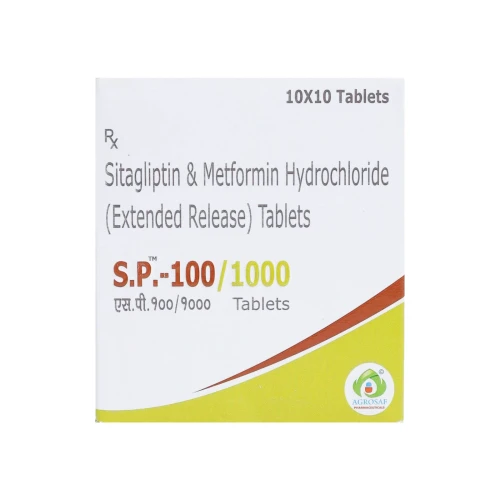| Description: | S.P. 100/1000 MG Tablet is a combination anti-diabetic medicine formulated with Sitagliptin and Extended-Release Metformin (ER). It is used for the effective management of type 2 diabetes mellitus in adults. Sitagliptin, a DPP-4 inhibitor, enhances insulin secretion and reduces glucagon levels, while Metformin ER ensures prolonged glucose control by decreasing hepatic glucose production and improving insulin sensitivity. The extended-release formulation provides sustained action with improved gastrointestinal tolerability and convenient once-daily dosing. |