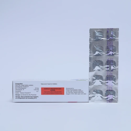 | COMPOSITION: | Escitalopram Oxalate Ip Eq. To Escitalopram (10 Mg) + Clonazepam Ip (0.25 Mg) + Excipients Q.s. (color Titanium Dioxide Ip) |