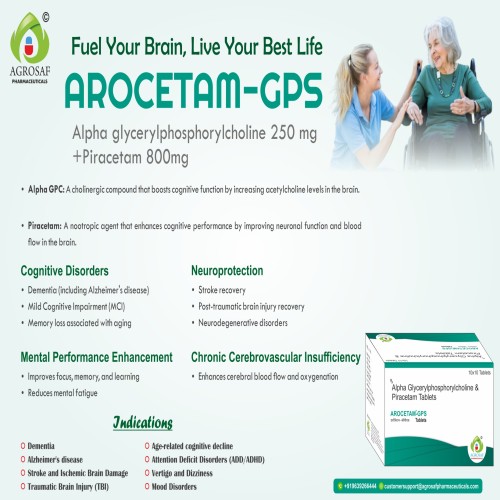 AROCETAM-GPS Tablet is used to improve memory, cognitive function, and brain health in patients with neurological conditions or cognitive decline.