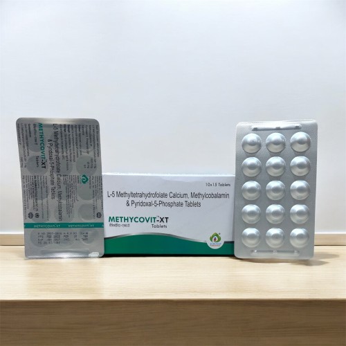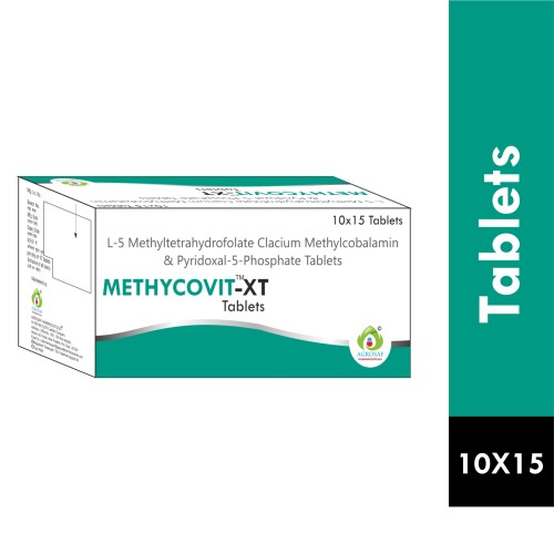 | Description: | METHYCOVIT-XT Tablet is a neuro-nutritional supplement formulated to support nerve health, red blood cell formation, and overall metabolic function. It contains L-5 Methyltetrahydrofolate Calcium 1 mg, Methylcobalamin 1500 mcg, and Pyridoxal-5-Phosphate 25 mg. L-5 Methyltetrahydrofolate is the active form of folate that supports DNA synthesis and red blood cell production. Methylcobalamin, an active form of vitamin B12, plays a crucial role in nerve regeneration and neurological function. Pyridoxal-5-phosphate, the active form of vitamin B6, supports amino acid metabolism and neurotransmitter synthesis. METHYCOVIT-XT Tablet is commonly prescribed to support the management of Peripheral Neuropathy, Vitamin B12 Deficiency, and other nerve-related disorders. |