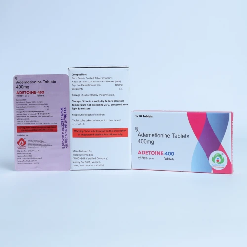 | Description: | ADETOINE 400 Tablet contains Ademetionine 400 mg, a hepatoprotective medication used to support liver health and improve liver function. Ademetionine, also known as S-adenosyl-L-methionine (SAMe), plays an important role in various metabolic processes in the body, particularly in liver detoxification and regeneration. This medication helps protect liver cells from damage, supports bile flow, and promotes the regeneration of healthy liver tissue. It is commonly prescribed for liver disorders such as cholestasis, fatty liver disease, alcoholic liver disease, and drug-induced liver damage. ADETOINE 400 Tablet is widely used as a supportive therapy in liver care to improve liver enzyme levels, enhance detoxification processes, and maintain overall liver health. |